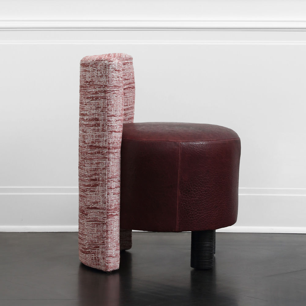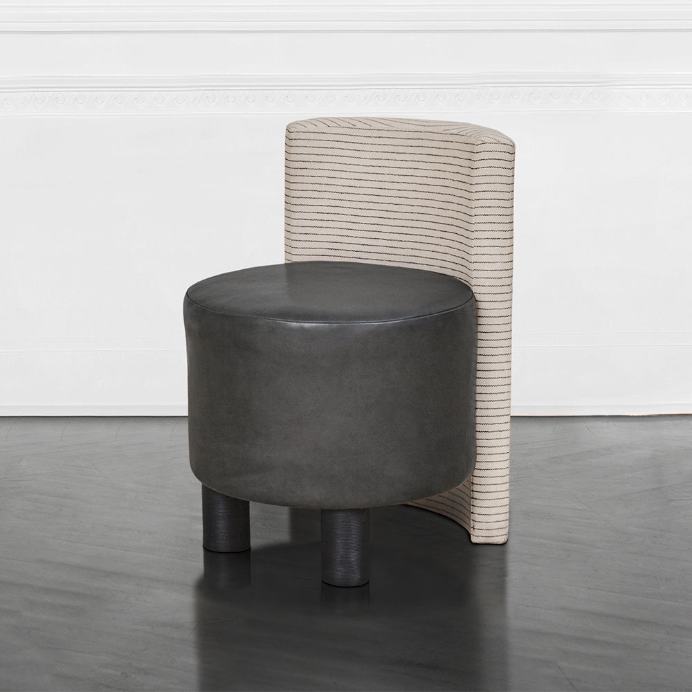 这种低矮的椅子或凳子结合了一些简单的体量和纹理,创造了一个戏剧性的临时座椅。鼓形座椅与垂直的背部相接,形成后肢,椅子的前部位于一对粗壮的圆柱形肋腿上。 这是梳妆台或休闲客厅布置的理想座位选择。 腿部饰面选项包括漂白,天然和黑檀木。 提供精选面料和皮革。