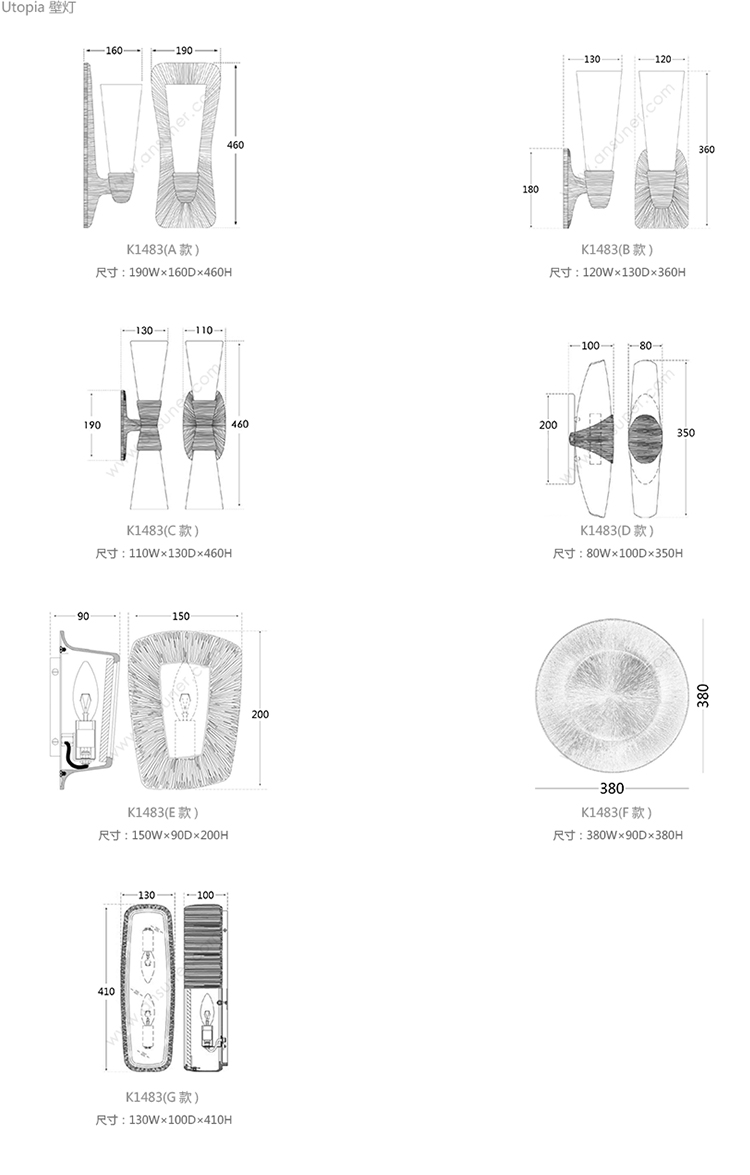 Utopia 壁灯 系列尺寸/示意图
