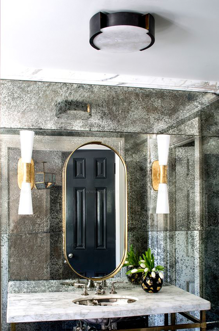 Melange Flush Mount(Melange吸顶灯)巧妙地将天然雪花石膏和流线型金属细节与流线型几何形状相结合,散发出现代气息,同时强调天然石材的美感。 这款夹具采用手工雕刻的天然雪花石膏,配有古董黄铜,青铜或抛光镍细节,适合潮湿环境。