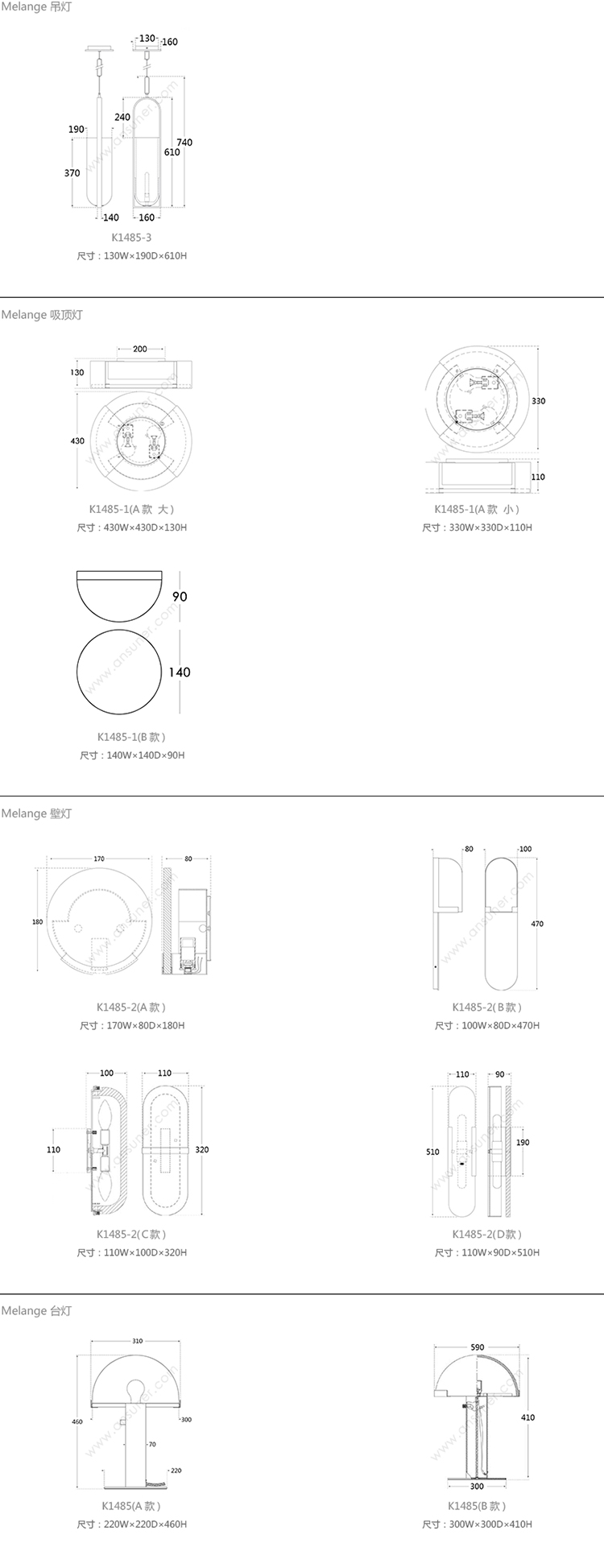 创意家具 - 灯饰|吊灯|办公家具|设计师家具|Melange小号细长吊灯