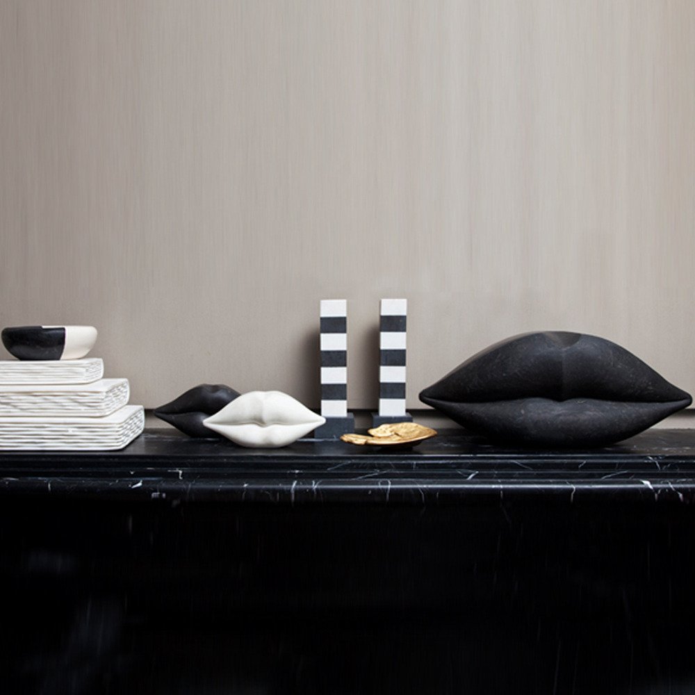 经典之吻,黑色马奎纳和白卡拉卡塔磨砂大理石,灵感来自经典雕塑形式。 标志性的家居饰品为您的书柜或餐桌增添了撩人的气息。 由一块石头工匠手工雕刻而成,永恒而别致的大理石之吻为任何空间带来更高级的奢华感。