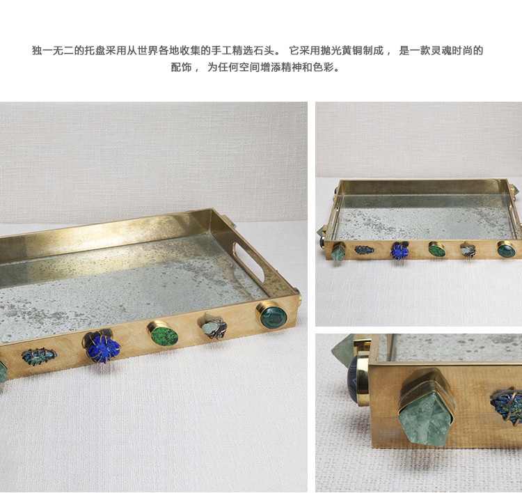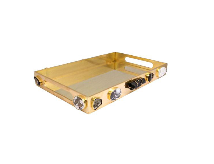 独一无二的托盘采用从世界各地收集的手工精选石头。 它采用抛光黄铜制成,是一款灵魂时尚的配饰,为任何空间增添精神和色彩。