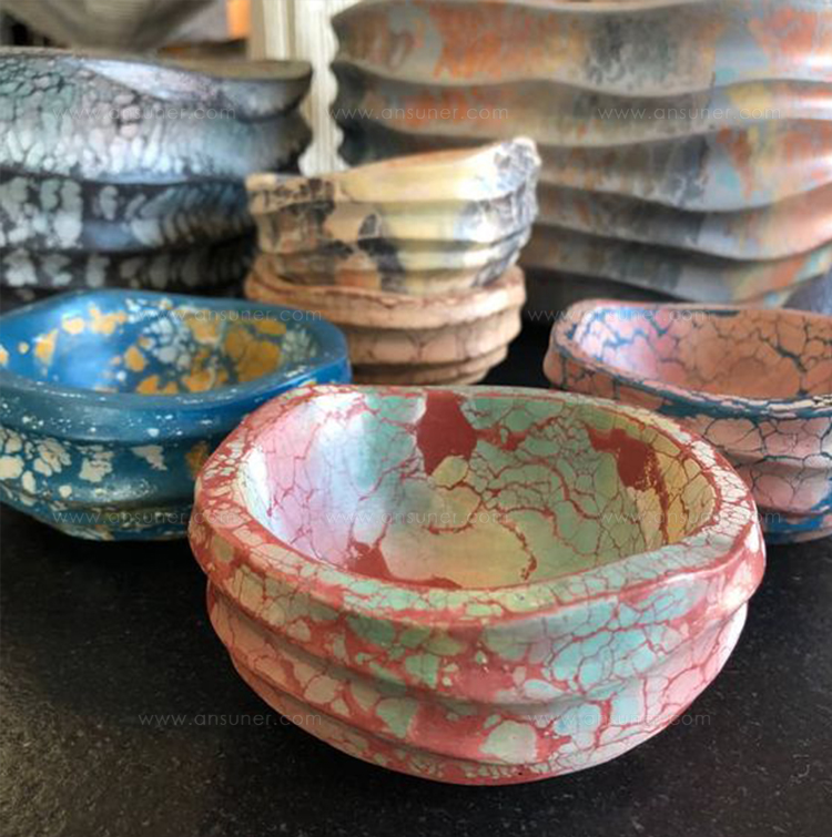 这是一种独特的,由工匠手工雕刻而成的形状。 这种有机形状的碗具有浇注混凝土的自然颜色变化。 这个小小的用品还有许多用途,非常适合存放你所有的宝物。
