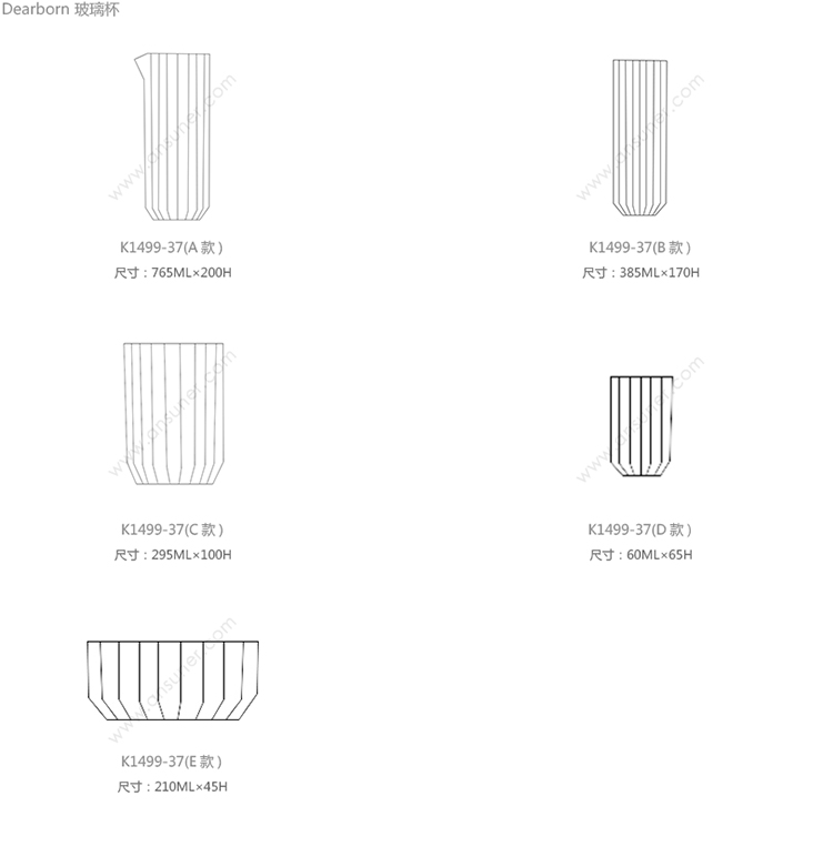 Dearborn 玻璃杯 系列尺寸/示意图