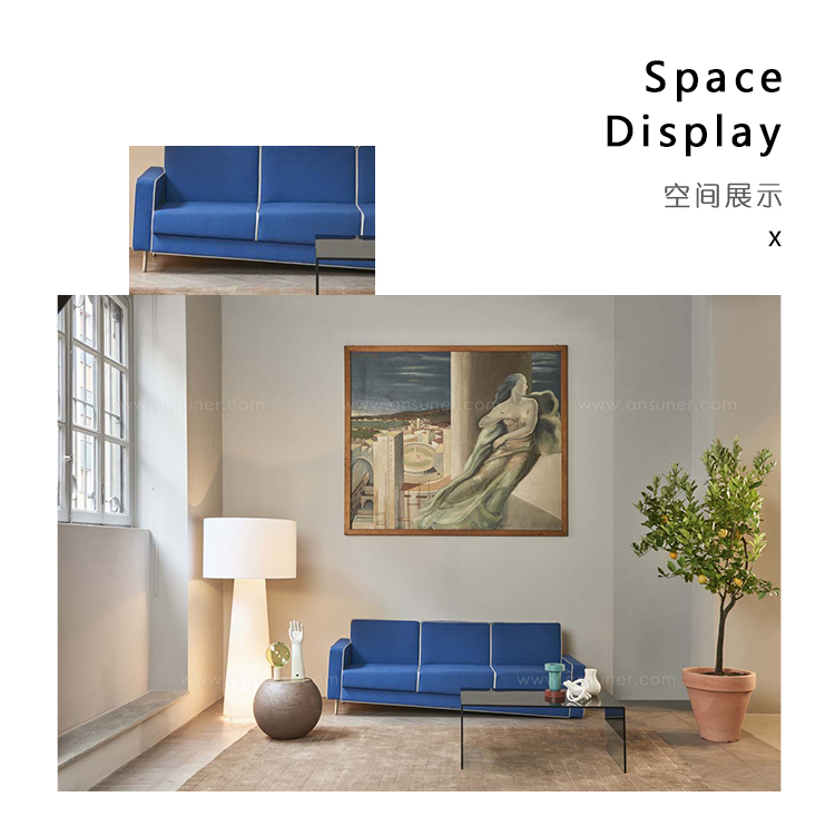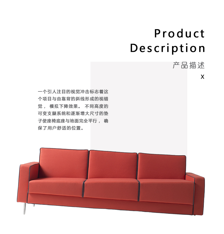 适应当代世界突然变化的精神激发了Fabio Novembre设计Adaptation系列的灵感。 一个引人注目的视觉冲击标志着这个项目与由靠背的斜线形成的视错觉,模拟下降效果。 不同高度的可变支腿系统和逐渐增大尺寸的垫子使座椅底座与地面完全平行,确保了舒适度。 沙发和扶手椅采用织物和皮革制成,采用以下对比色饰面,增强了物体几何形状:黑色,白色,灰色,红色,酒红色,空军蓝。