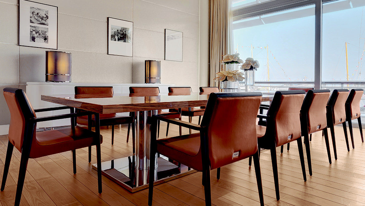 The Nairobi armchair Lounge version has a solid-wood structure stained dark brown and has been reinterpreted in traditional, harmonious and fluid cabinet-maker style without any interruptions in shape.