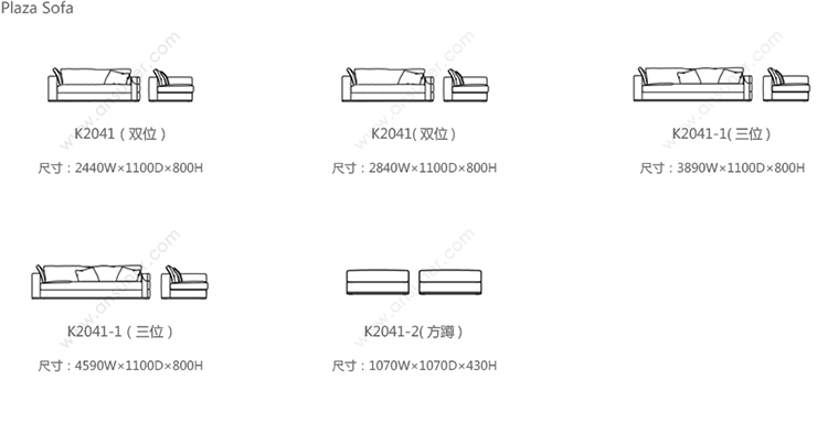 PPlaza Sofa 系列尺寸/示意图