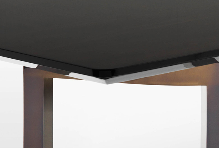 OPTIONAL Only for lacquered table: extraclear tempered grinded glass top,back varnished, coordinated with the top colour