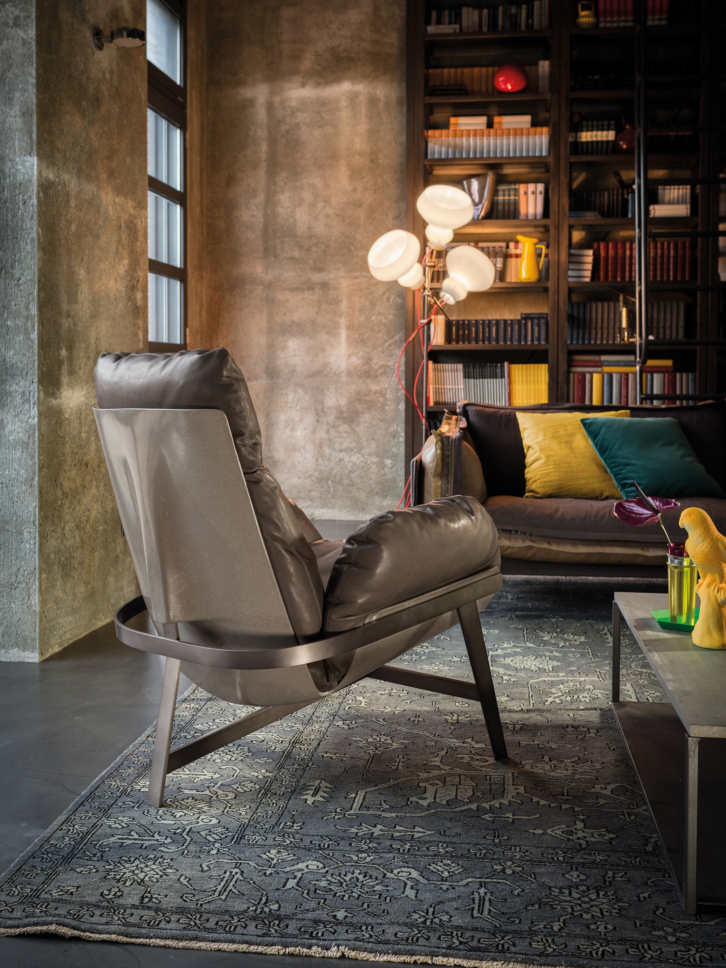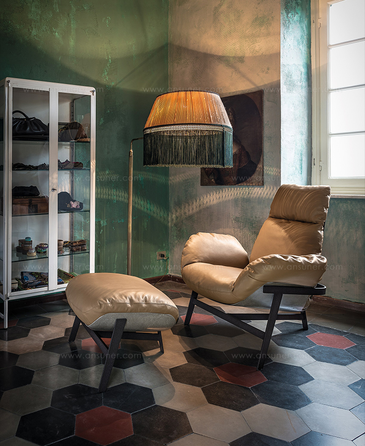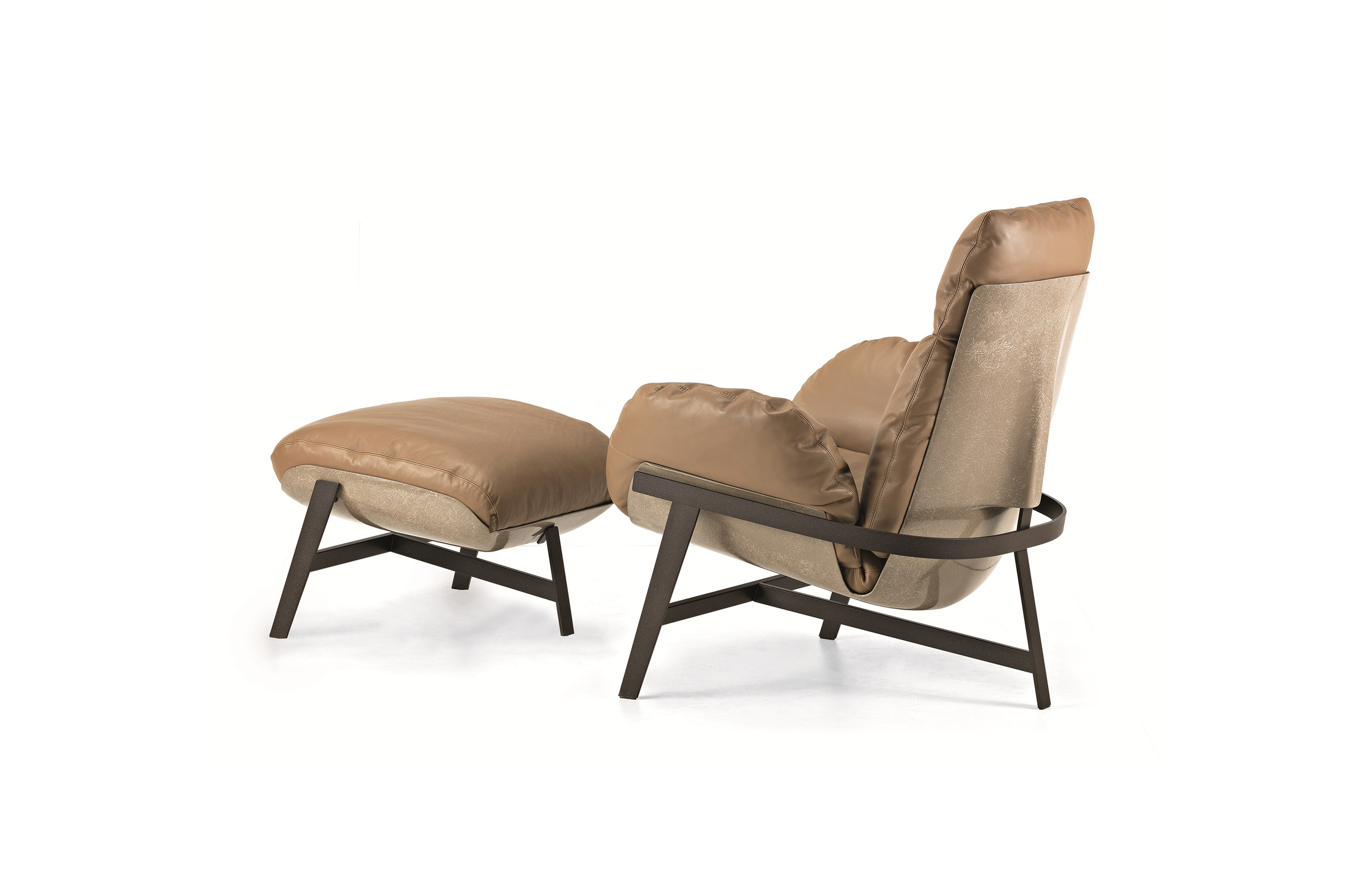 优雅而符合人体工程学的平衡。 动态稳定的温和。建筑配置突出了永恒的外观,并强调了个人使用材料的重要性。木星扶手椅有一个折叠的金属拱结构,由玻璃纤维外壳支撑着,填充的羽毛保证了高水平的舒适感。