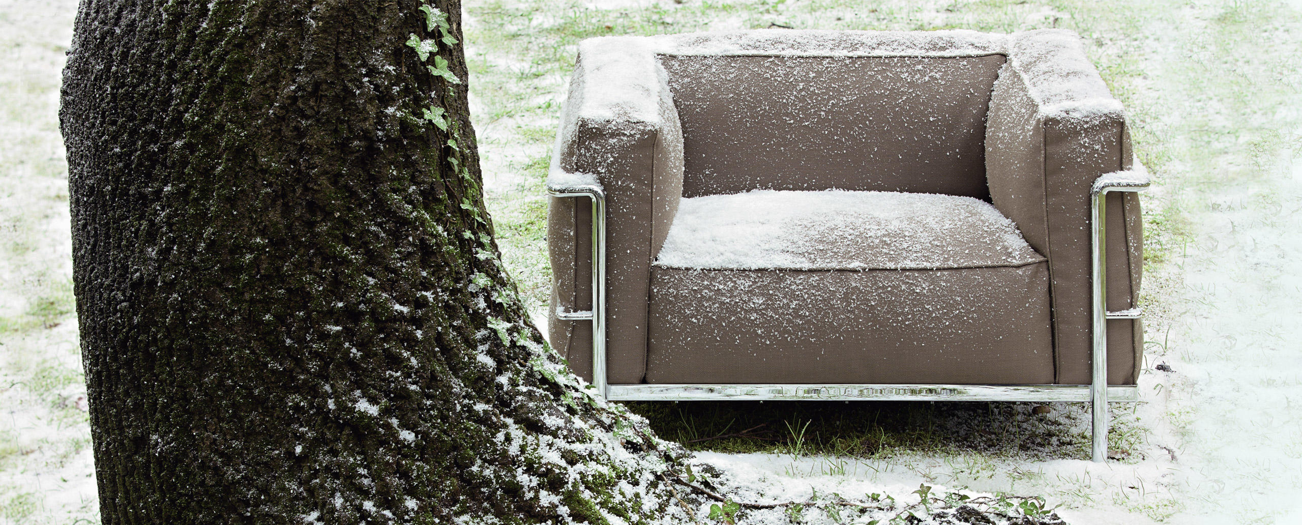 Fauteuil Grand Confort, 又称LC3。采用CR3三价镀铬钢材质或光泽玄武岩搭配灰色、亮蓝、绿色、枣红及赭色或哑光黑色珐琅钢架的双扶手椅和左/右单扶手椅及两人位/三人位沙发。柔软的衬垫采用聚氨酯海绵和喷胶棉或聚氨酯芯羽绒棉。皮革或布艺面料软包;镀铬框架结构可由布艺软包。同样有户外版本。