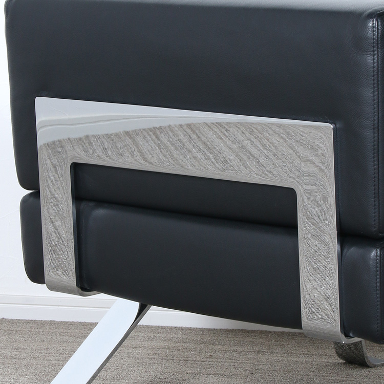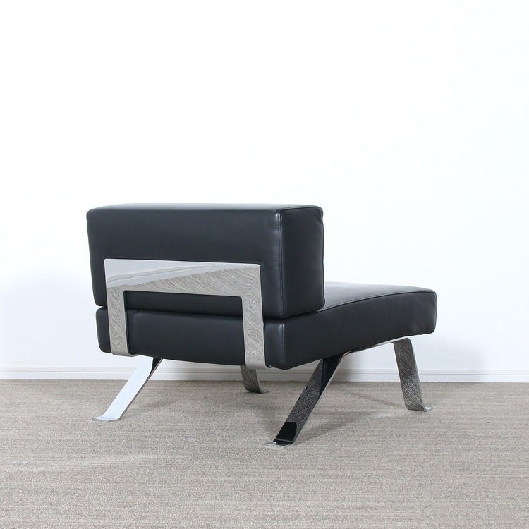 采用抛光镀铬或浮雕外饰黑色钢架的座椅。座垫松软,采用可拆换垫套,填充聚氨酯纤维和喷胶棉。