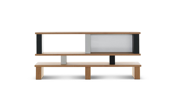 体积和空间的随心改变以及垂直结构的色彩排列变化使这款书柜极具动感。它有高、低两种款式,书架用天然橡木并在垂直方向交替漆以黑白双色。 滑动装置镀有缎铝阳极氧化膜。