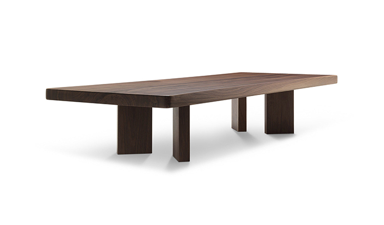 采用哑光黑色的珍贵木材或黑色实木橡木或美国黑胡桃木制造的矮桌。桌面厚度和凹面刻画了正式用语中的模型特征,并创造了令人讶异的轻盈感。该款矮桌是于1969年为日本驻巴黎大使馆设计的,这款咖啡桌是技术和中继合成的胜利。
