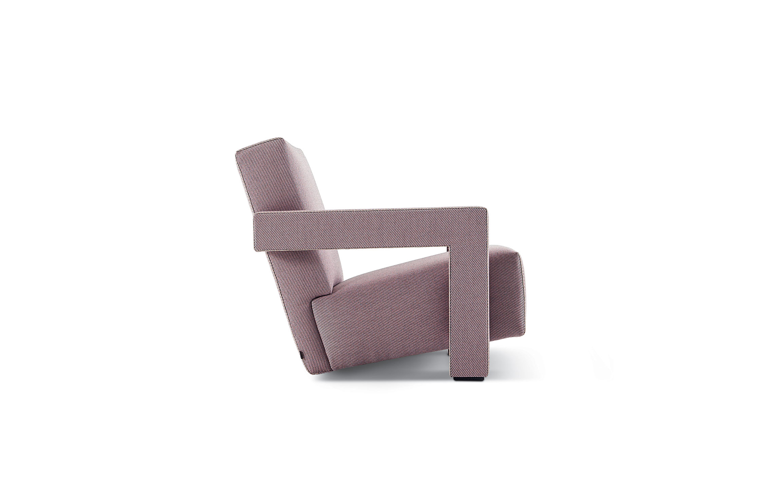 Rietveld是一位荷兰建筑师,他有强烈的实验倾向,他和蒙德里安是1917年新塑料德斯提尔运动的创始人之一,于1935年设计了Utrecht模型。这个模型是为阿姆斯特丹的Metz&co百货公司创建的,因此为大众市场设计,并代表Rietveld决定采用更“市场导向”的方式来舒适和放松。以五种不同颜色的两种可见的拼接(鞍针或齐格扎格)为例,强调了元素的分解。