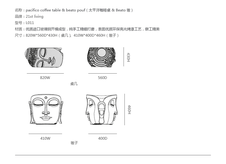 桌几:820 w | 560 d | 430 h