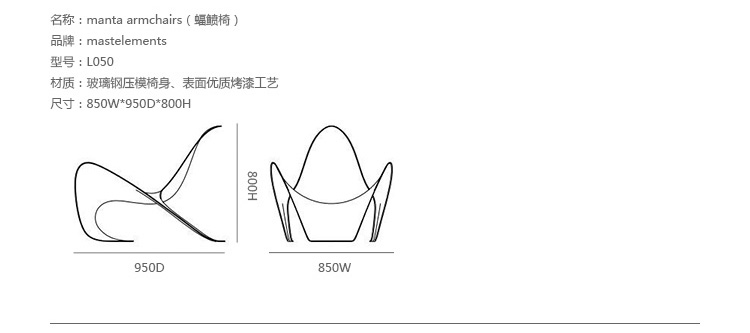 Manta Armchairs(蝠鲼椅)是由意大利著名设计师Robby Cantarutti设计的,这款椅子的设计灵感来自于多功能性的产品使用和各式空间的环境差异,Robby Cantarutti 透过研究各式异国文化、社会变迁和当代所重视的功能、信息传递,来设计现代感十足的亮丽家具。