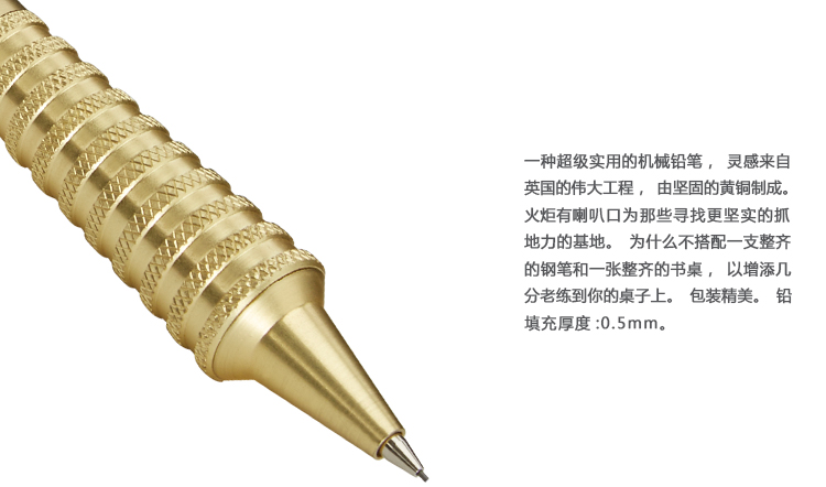 一种超级实用的机械铅笔,灵感来自英国的伟大工程,由坚固的黄铜制成。火炬有喇叭口