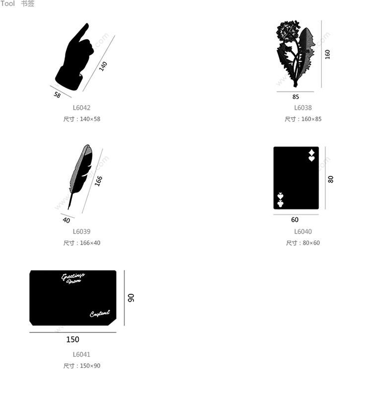 Tool 手型书签 系列尺寸/示意图