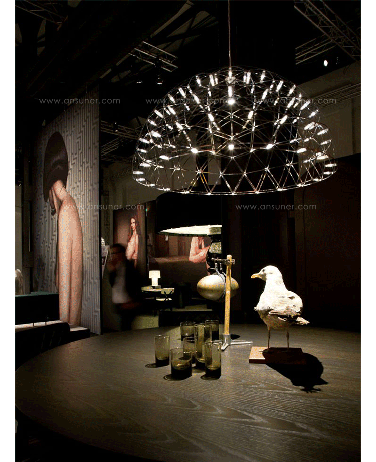 Raimond Done brings the poetry of a starry night to our homes,having a powerful lanp right at the centre of its dome-shaped network of twinkling LED lights.This makes it te perfect reading or dining lamp.