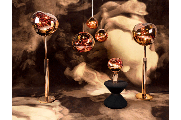 With Melt, Tom Dixon's experiments in the technologically advanced field of vacuum metallization takes on a new twist. Melt is a series of distorted spherical pendants born from a collaboration with Swedish radical design collective Front. The light bouncing and reflecting around the uneven surfaces creates a dramatic melting hot blown glass effect and an ethereal luminosity on their surroundings. Melt is translucent when on and mirror finish when off. Its internal luminosity is visible in full daylight. Available in two sizes and three finish options.