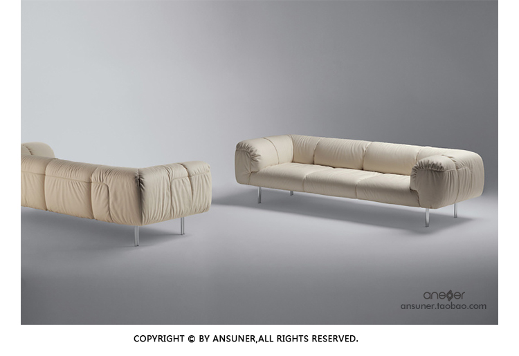 由意大利设计师Cini Boeri为当地家具品牌Poltrona Frau设计的软沙发Bebop,有两座及三座:Bebop 2-seater Sofa(比波普双座沙发)、Bebop 3-seater Sofa(比波普三座沙发),简洁圆润的设计线形,天鹅绒般柔软的舒适坐垫,底座和靠背框架采用山毛榉木,扶手则为白杨木,再覆以Pelle Frau皮革,沙发腿为镀铬钢管,看上去简洁高贵,优雅低调,关键是放在哪个环境下都不突兀,速配率超高。