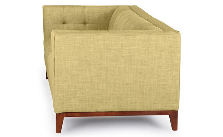 True to the original,the front edge of the seat cushion is upholstered in a 1-piece design,seamless and piping free for a clean appearance.The extending chaise is built as one unit into the sofa element providing an exceptionally clean side profile (see images).The hand-crafted quality of Harrison features kiln dried solid hardwood legs.A foam wrapped,kiln dried wood frame provides the structure from which the entire sofa is built upon.