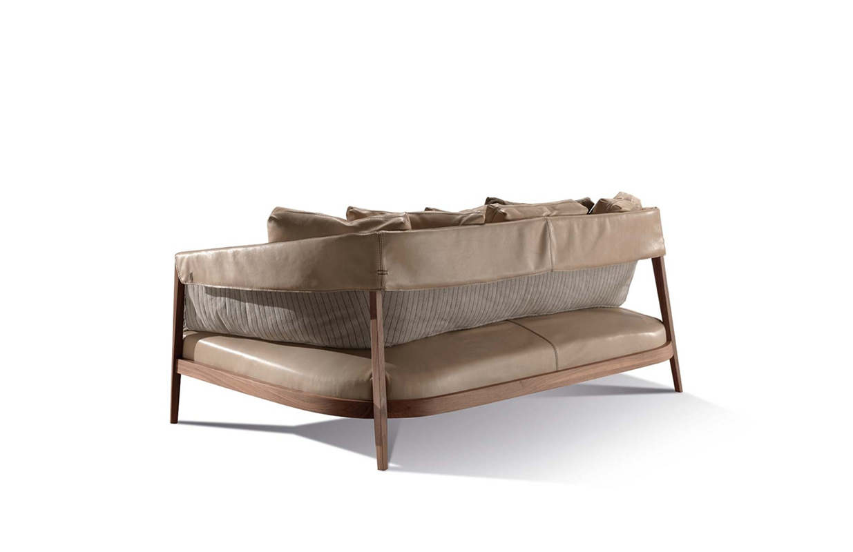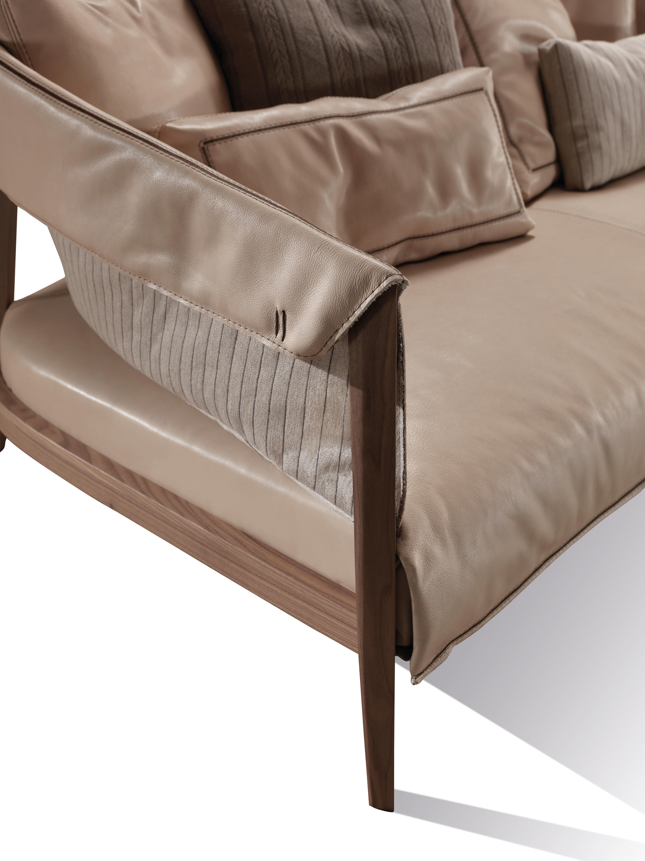 沙发,打破了经典模式和要求的同时,其结构简单,线性结构是:绝对的硬木是笼罩由皮肤褶皮瓣耦合到织物或对比,赋予了男性所组成,但impreziosita精制的刺绣。