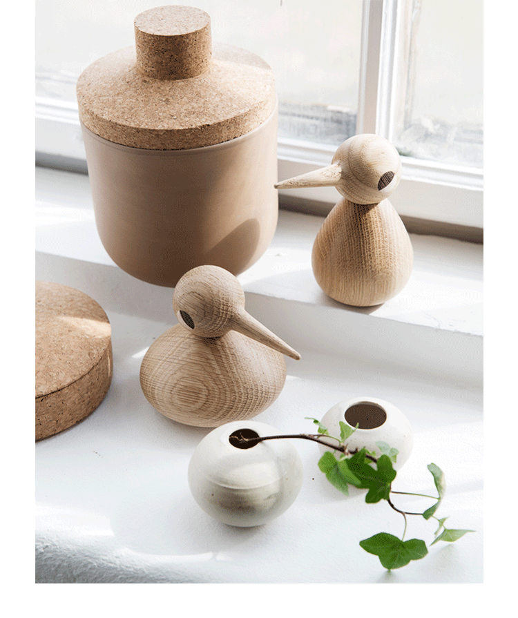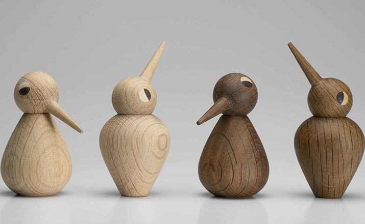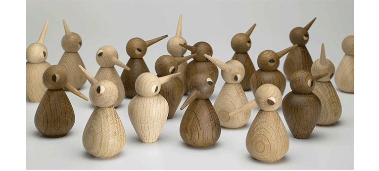 他于1959年所设计的简洁有机线条木鸟家族系列︰有三代同堂的鸟爸、鸟妈、鸟阿公、鸟阿嬷、还有鸟宝贝,虽然当年只有鸟宝贝问世,却已经在50年代的丹麦掀起一股木工艺术品的热潮,并引起世界各地设计界与媒体的青睐报导,成为当时收藏家的最爱。 如今,Architecmade公司让整个鸟家族大团圆,重新问世登场,你我怎能再错过这次收藏的机会。