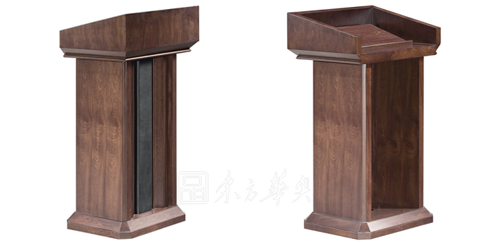 ※    上图为演讲台细节展示图,可选配话筒等配件,优美的弧形主体,木质油漆结构,进口油漆,国内首创内增加纳米银抗菌材料。