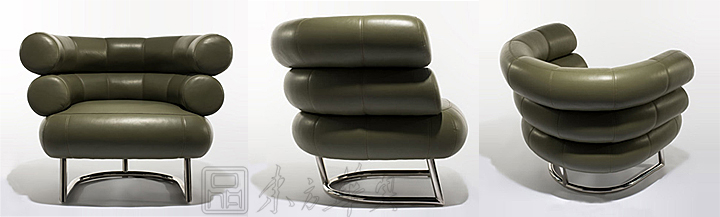 ※  必比登椅(Bibendum chair )是20世纪最知名的家具设计之一,是艾琳•格蕾(Eileen Gray)1929年设计的,开始并不为世人所知,这情况持续到1972年的一次拍卖会上,从此开始风靡世界。