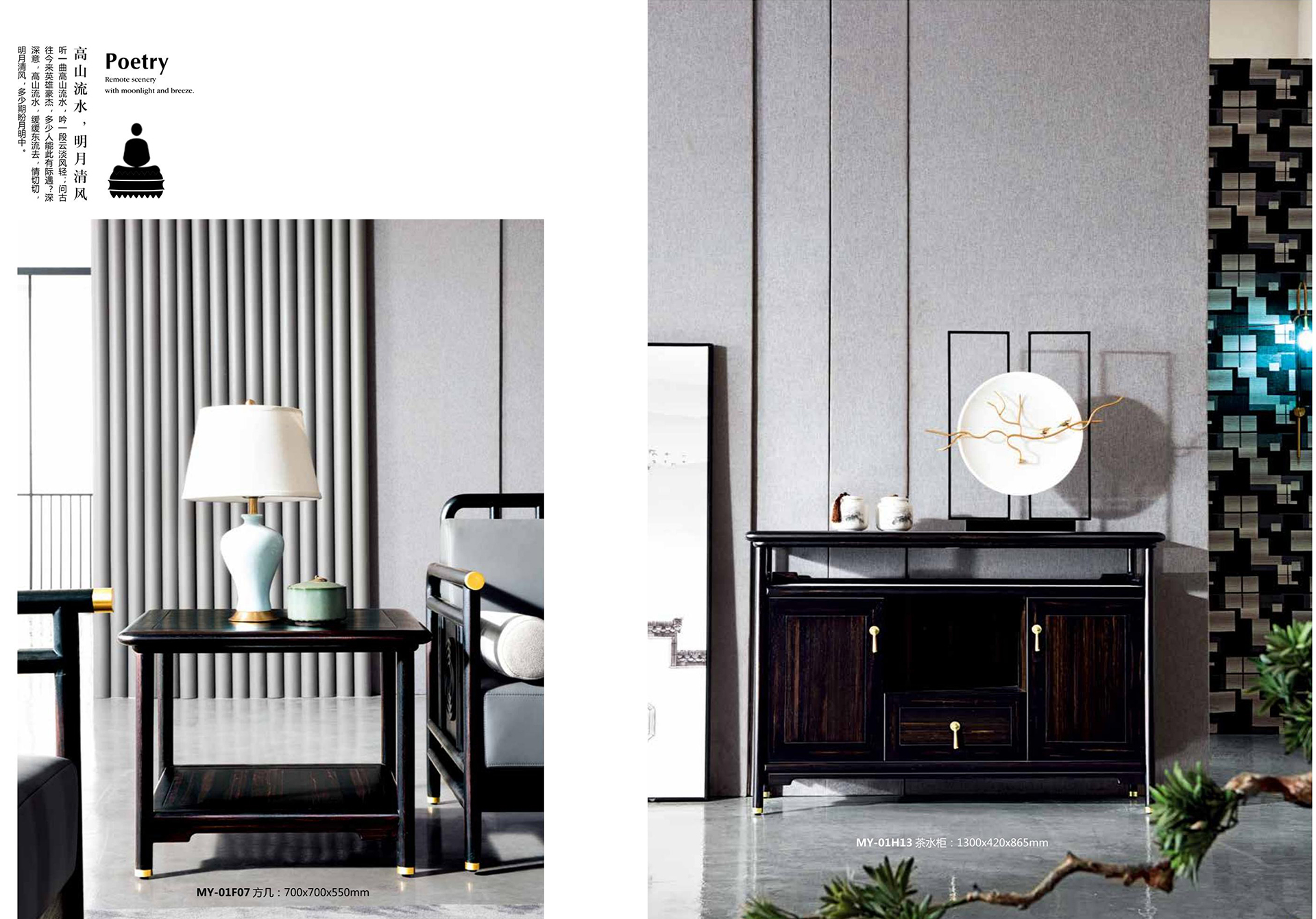 【尚善若水,至柔至坚】 水为至善至柔“水性绵绵密密“微则无声,巨则汹涌·与人无争却又容纳万物“水有滋养万物的德行“却不与万物发生矛盾“冲突“人生之道“莫过于此,【明月清风】系列汲水之灵韵“将水波纹艺术化铭刻于案桌之上“祝福它的拥有者处世尚善若水“成就无所不达。 【世事如茶“品味人生】 明月清风满是诗·一茶一椅品情谊“散发着明式文人气息的沙发“茶几 被国际化的轻奢主义提炼成一种韵味独特的时尚优雅 黑檀色的奢华气息 黄铜饰件的尊贵亮泽 此时此刻“一人独酌还是相约言欢 品一份成功者独有境界。