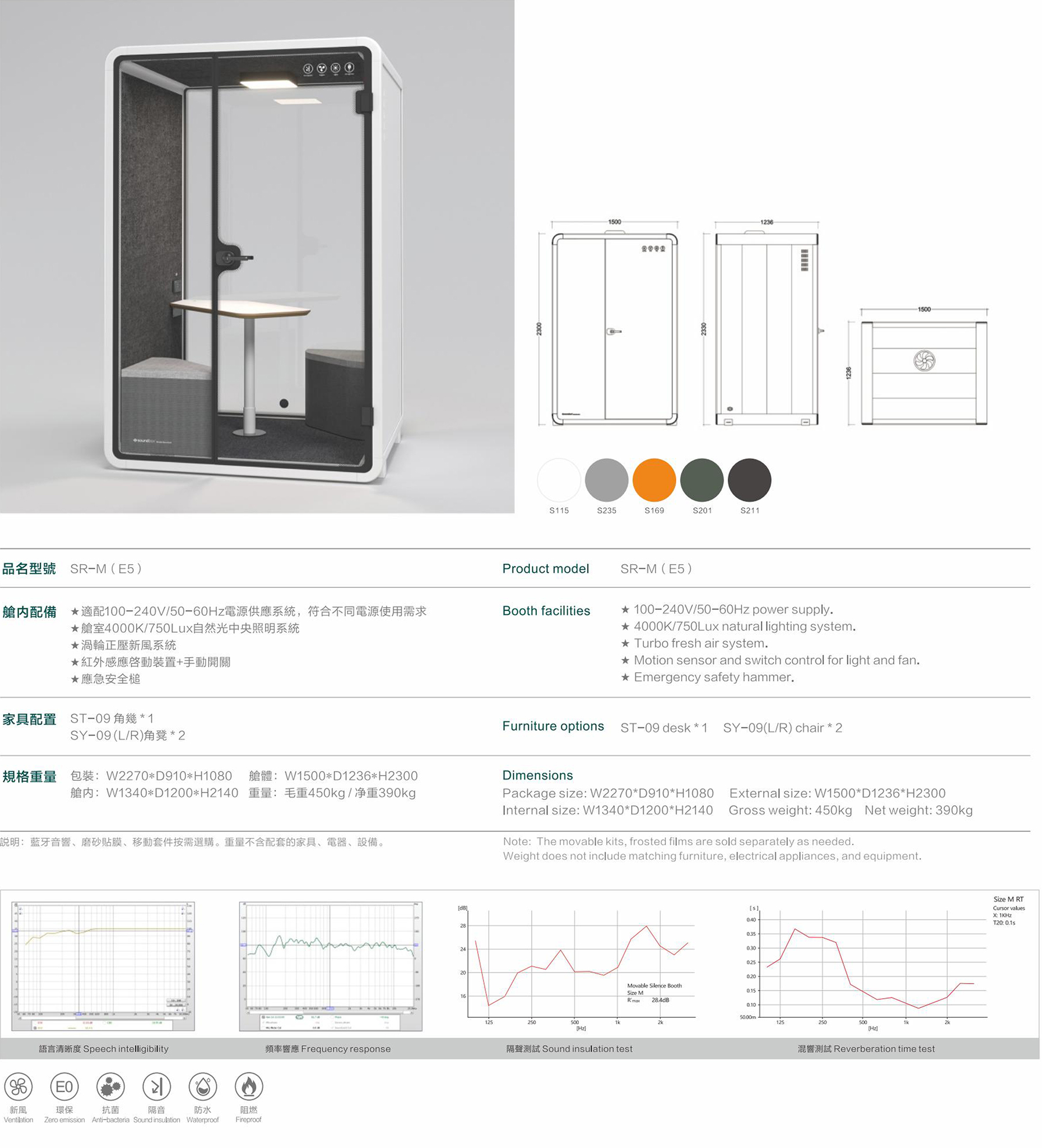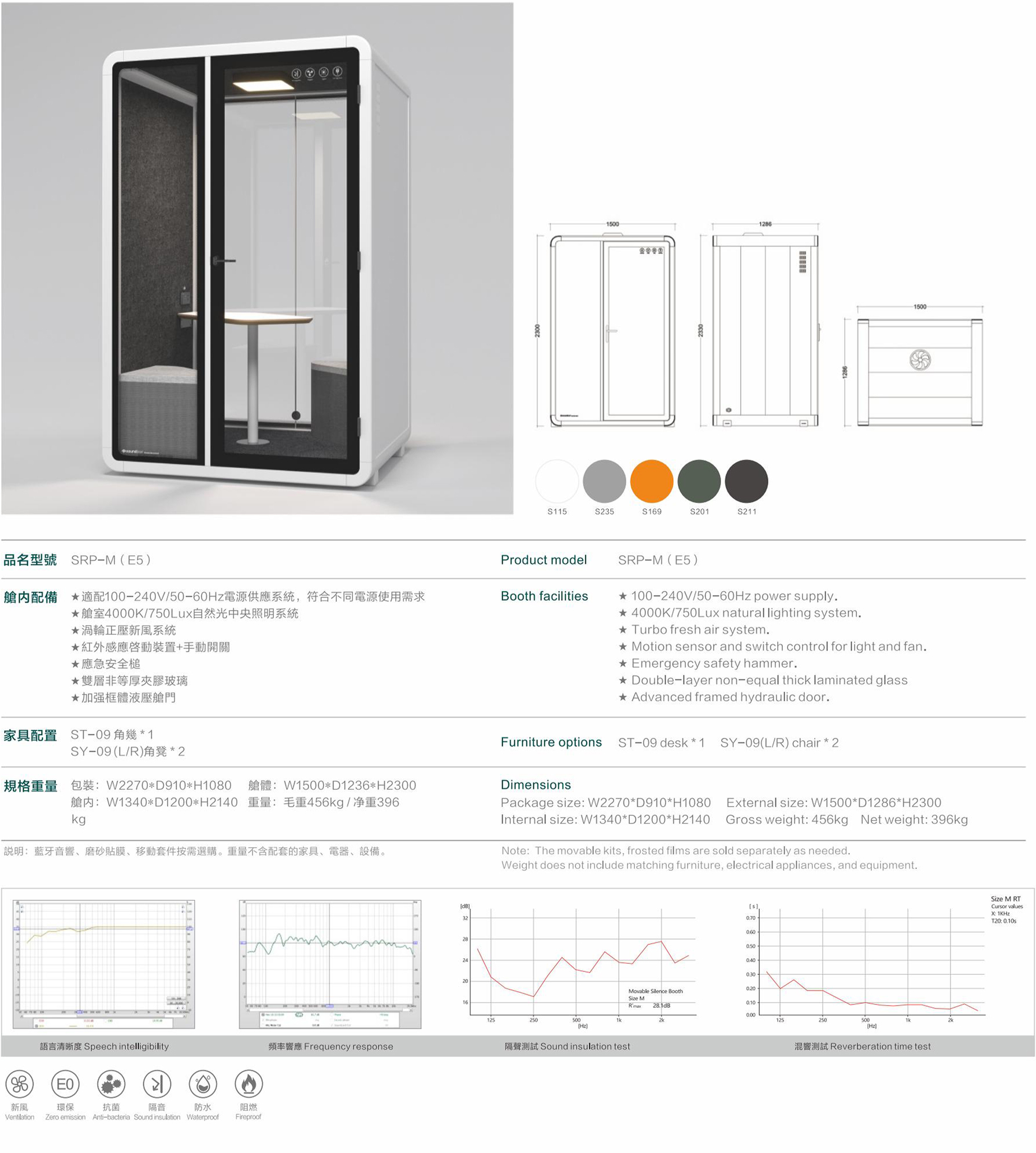 一个灵动的安静空间,满足您无限创想不传统的碳塑复合板、航空铝、隔声玻璃是它的主要组成,SOLIDWORKS软体力学建模让仓体组装仅需一种紧扣件,INSULMARSHALL ACOUSTIC 声学模拟设计准确预知并实现了舱体隔音和舱室音环境指标,它是一个强大,尽管它不是最完美的迷你空间,仓体采用可循环碳塑再生材料 SR系列 静音仓推崇低碳、简约、安全、实用主义优化非必要的功能和配置。从薄的全R角外观和互雅配色让它更精致、融入环境。