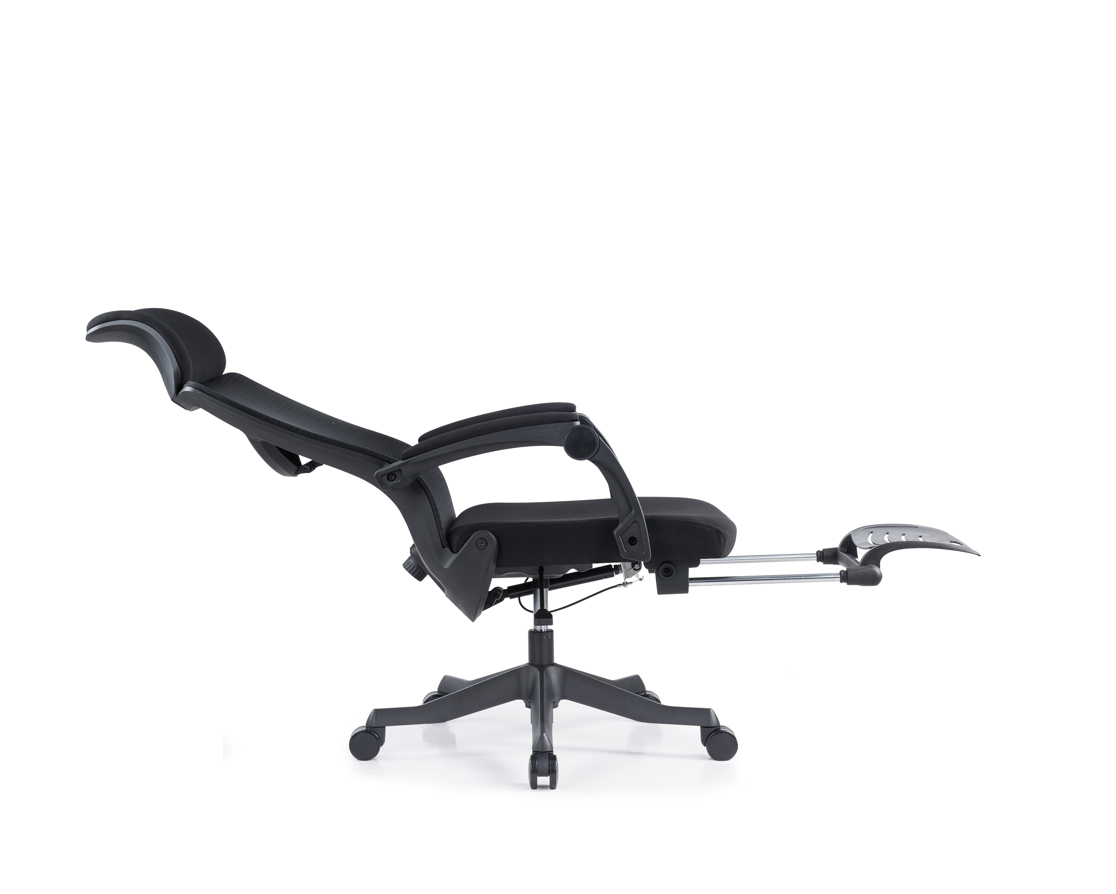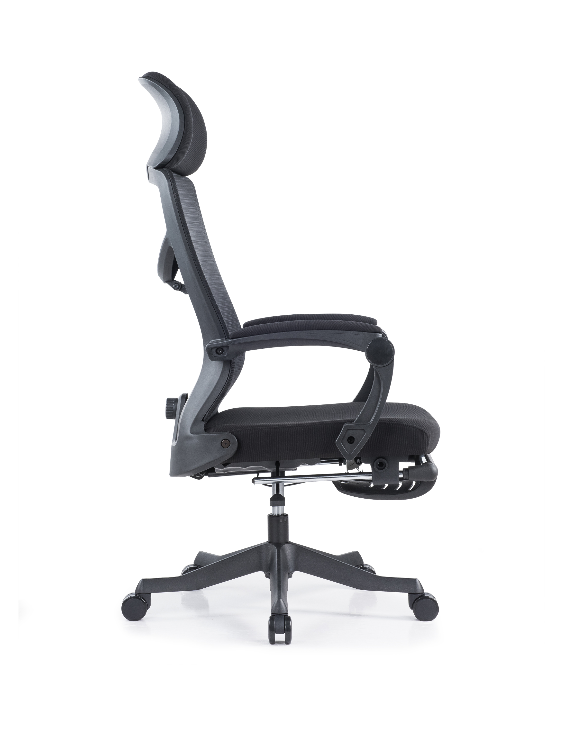 头枕:头枕靠背坐垫采用优质网布,升级大贴面软包头枕,柔软舒适 背框:黑色PA尼龙+玻璃纤维注塑配件,功能鱼骨腰枕,可前后调节灵动支撑,外拉式300N线控气动躺度功能,靠背可任意角度调节,最大可躺170° 坐垫:45#密度原生高弹力切割海绵坐垫,扪高弹力透气网布,安装隐藏式伸缩脚踏 扶手:自适应联动扶手,扶手面扪透气网布,手臂坐躺皆可支撑 气杆:优质黑色三级气压棒 椅脚:高强度345#尼龙脚,注塑一次成型五星脚 轮子:60黑色PU脚轮