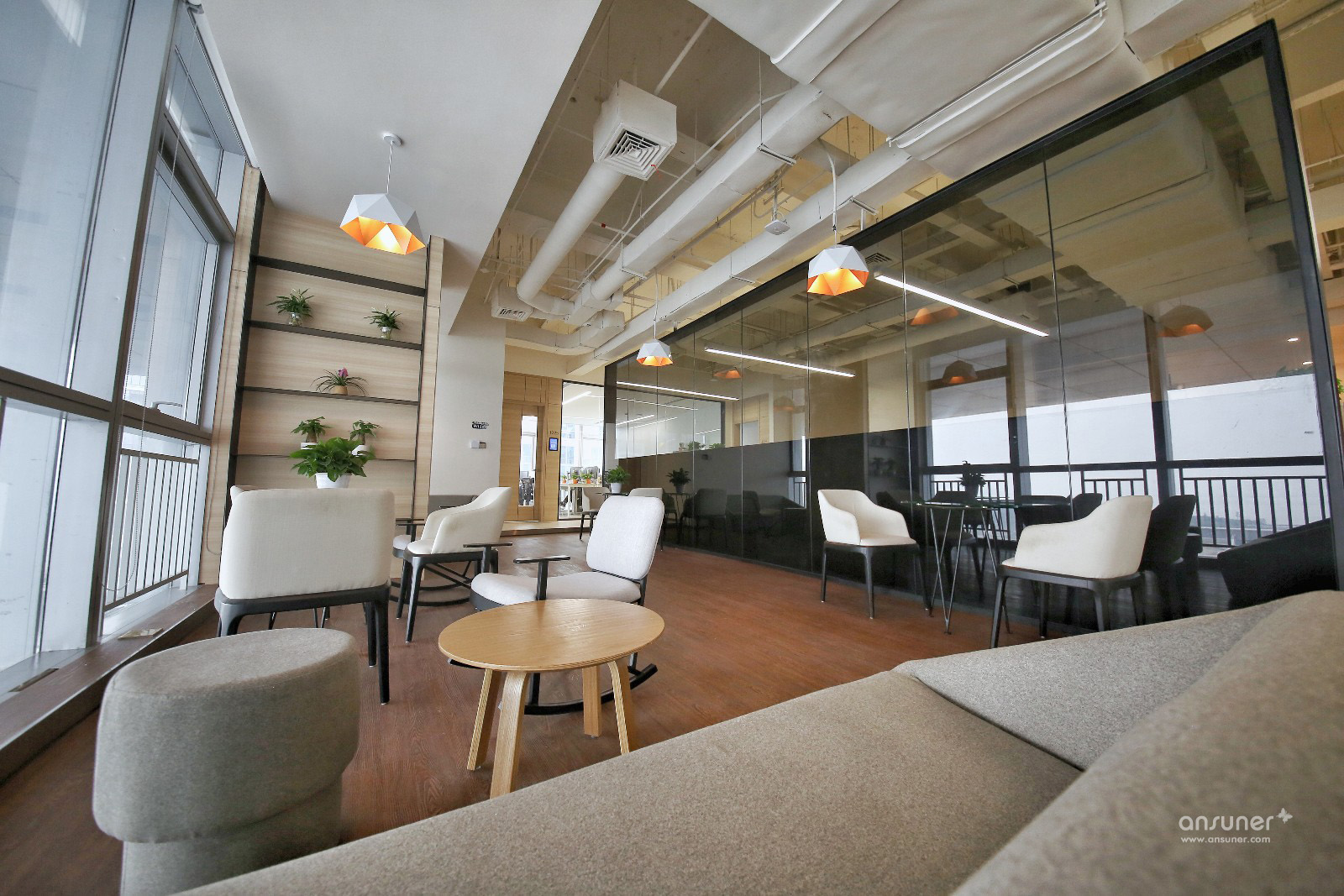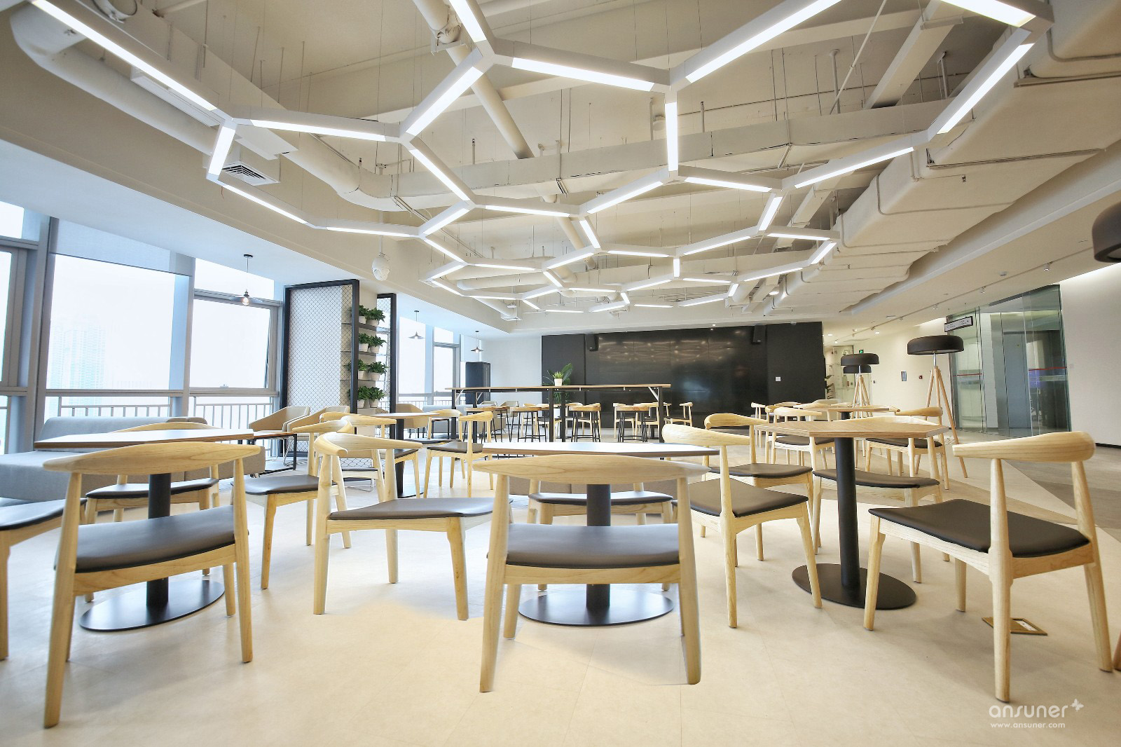 云行为不可见造成行为自由,而行为的自由却是由秩序来保证的,所以不可见的自由反而会以可见的秩序形成节奏,节奏形成美和品质。以可见的秩序与不可见的自由作为骨架,构建出的智慧空间,即拥有 “随处可以办公,随处不可办公”的独特特质。这种设计指导思路完全颠覆了传统办公空间的规则。