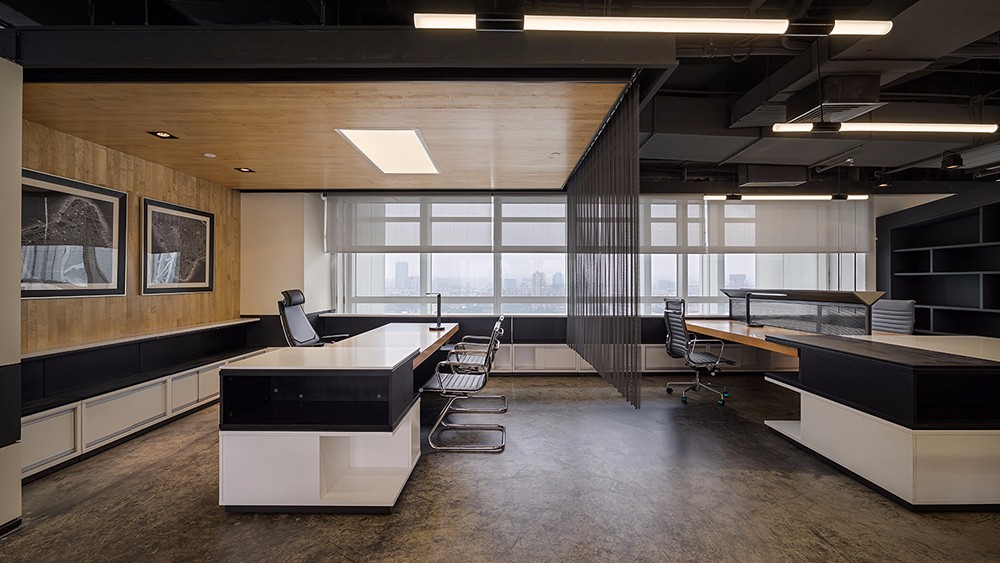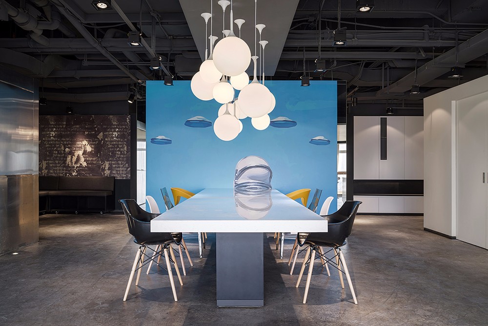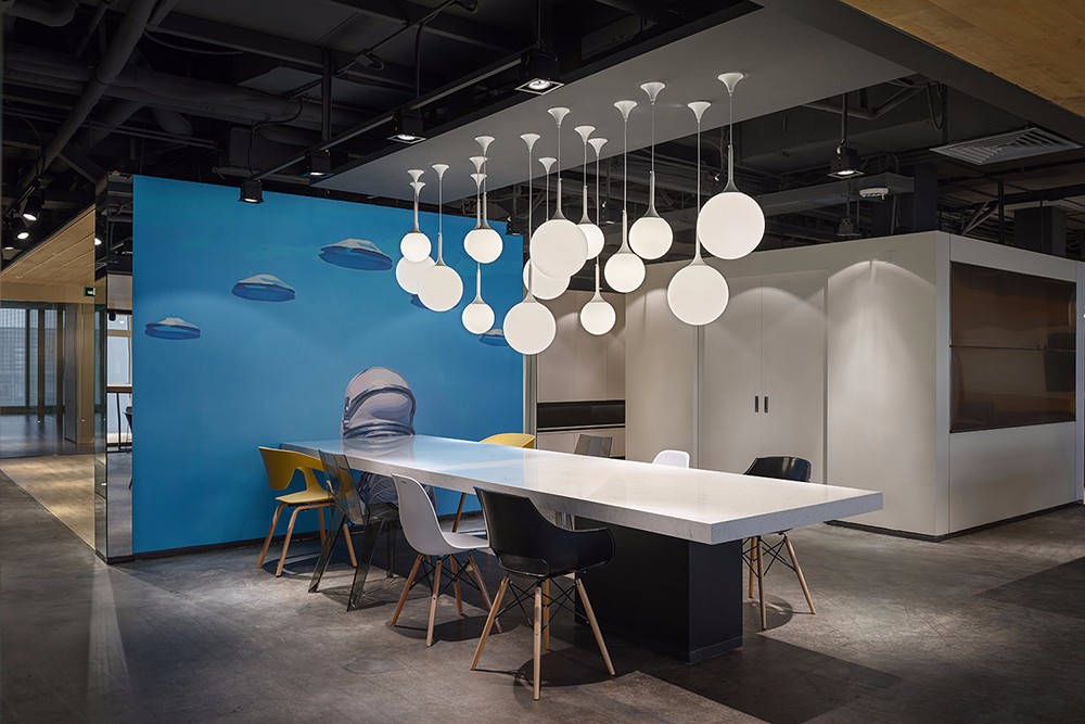 会议室空间宽阔,两边江景映入眼帘,空间色调以灰色和白色为主,再融入绿色的清新和木色的自然。创新的工作及休闲模式,黑色的包容,表达了保利集团的沉稳;跳跃的色系搭配,爆发的是创新的想法。在仿若浩瀚星空的设计中,保利(横琴)创新产业投资管理有限公司办公室展现出了积聚的力量,带给使用者无限的想象和发挥空间,创造更多潜在的商机。