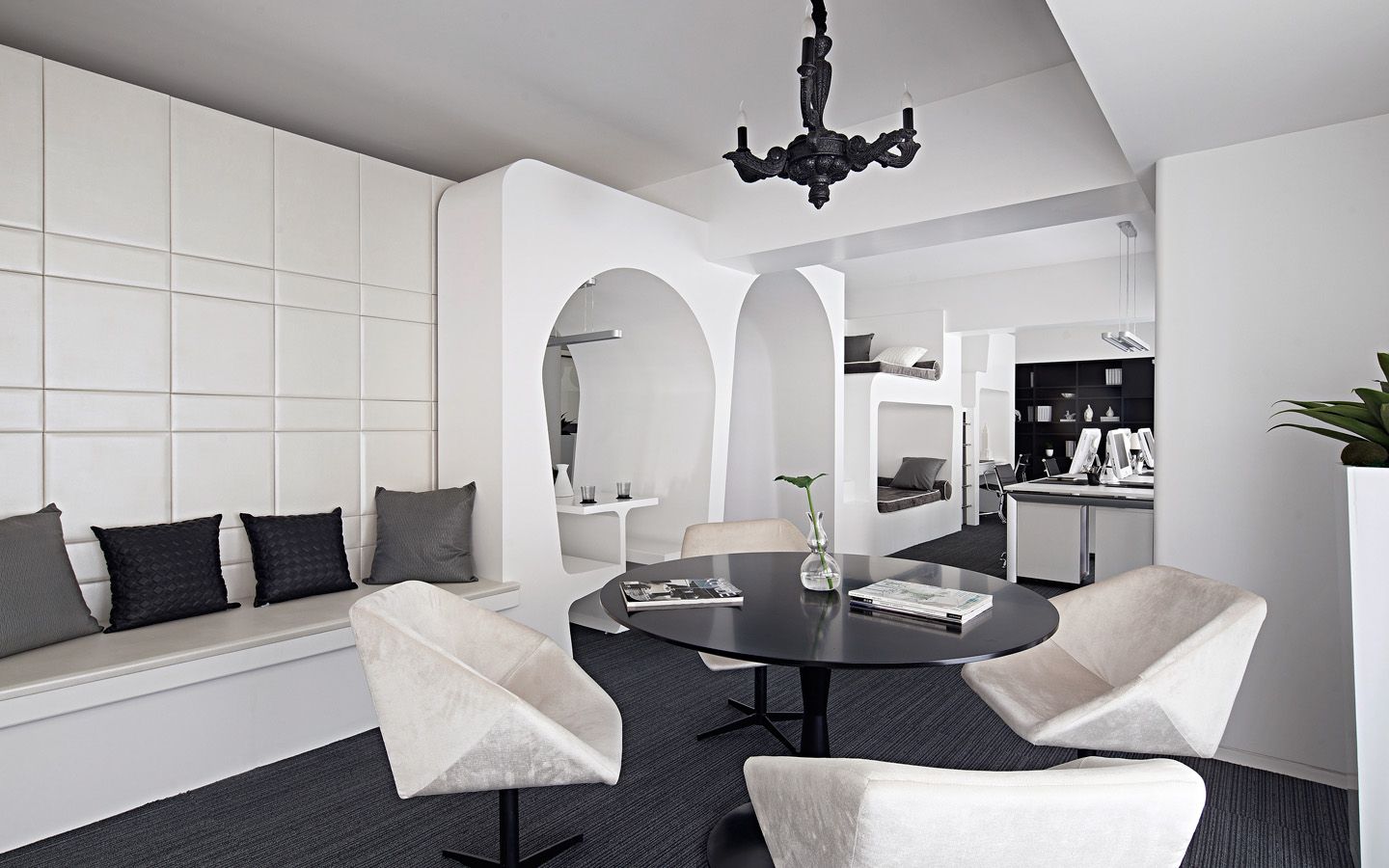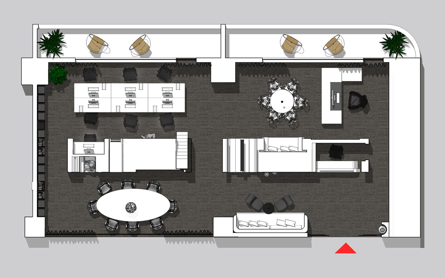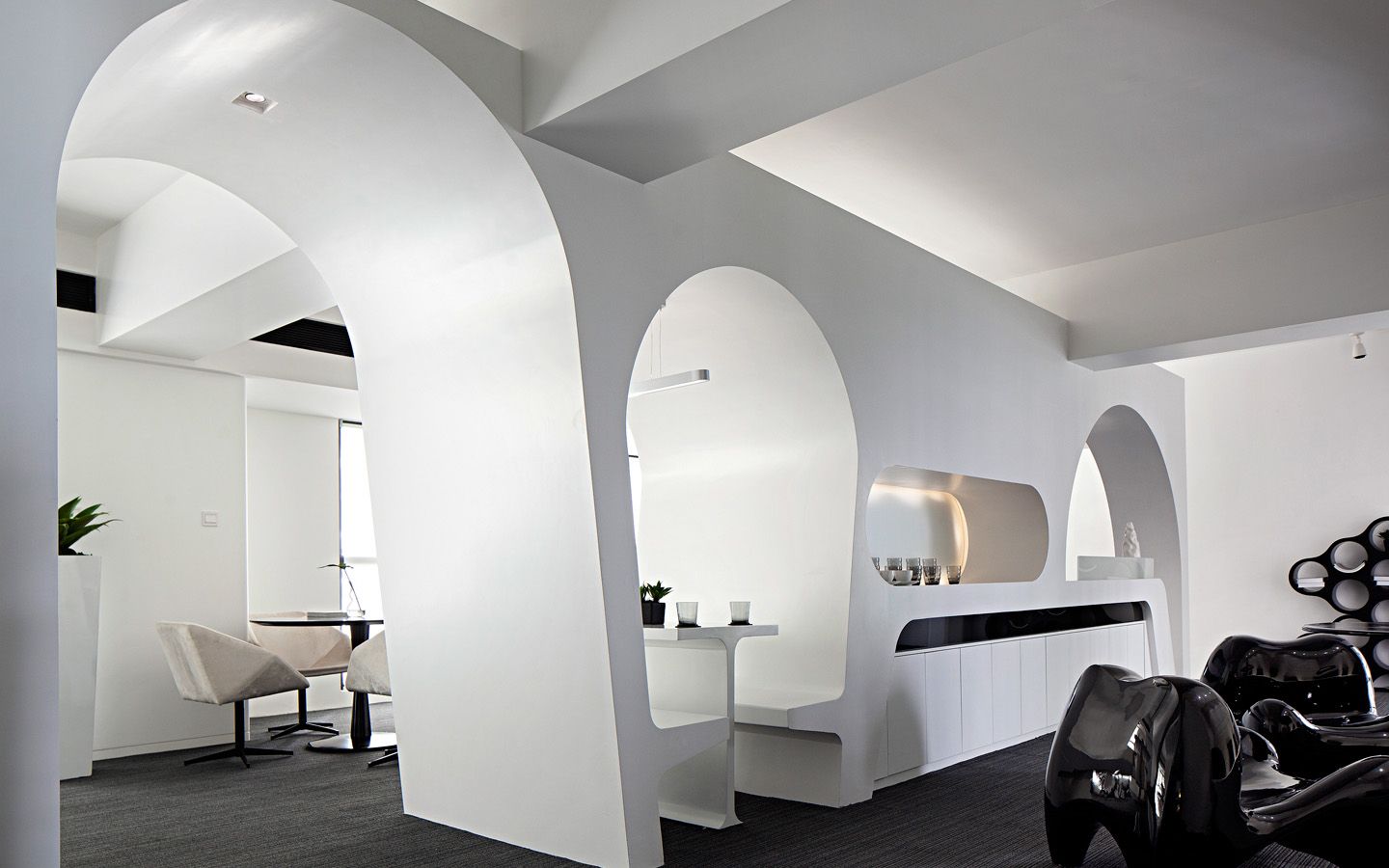 成都复地创意办公示范单位选择在一个不是非常大的空间作为自己的办公室,在设计上别出心裁、独树一帜,镂空的隔断,古朴的办公桌,绿色的植物点缀了灰暗的空间,营造舒适办公环境。