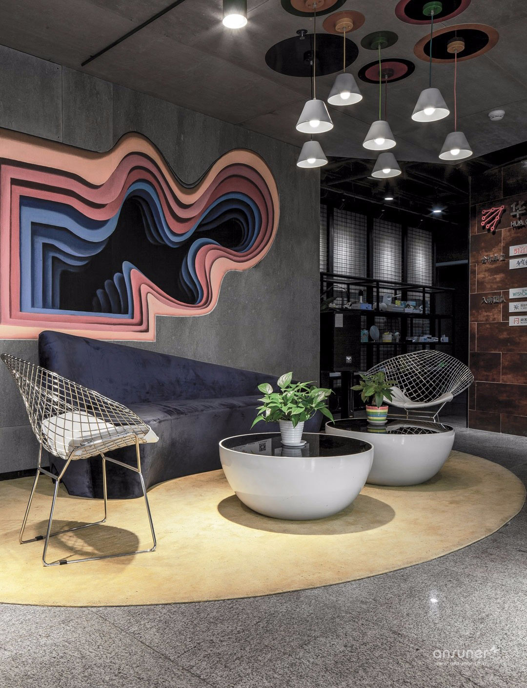 华强国际创客中心是为开发者和创业者提供的交流和共享空间,该创客中心的设计完全遵照LEED白金标准创建。办公室的内部以LOFT风和自由简洁爲设计主导,黑白灰则为整个空间的主色调,多彩的家具和饰品为辅。还在空间中融入和集成图形匹配,充分体现了现代办公的绿色环保、人性化的办公空间理念。