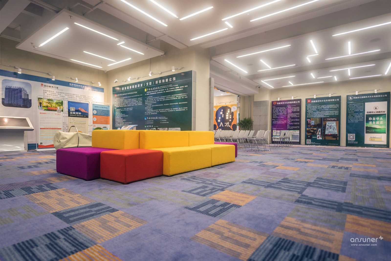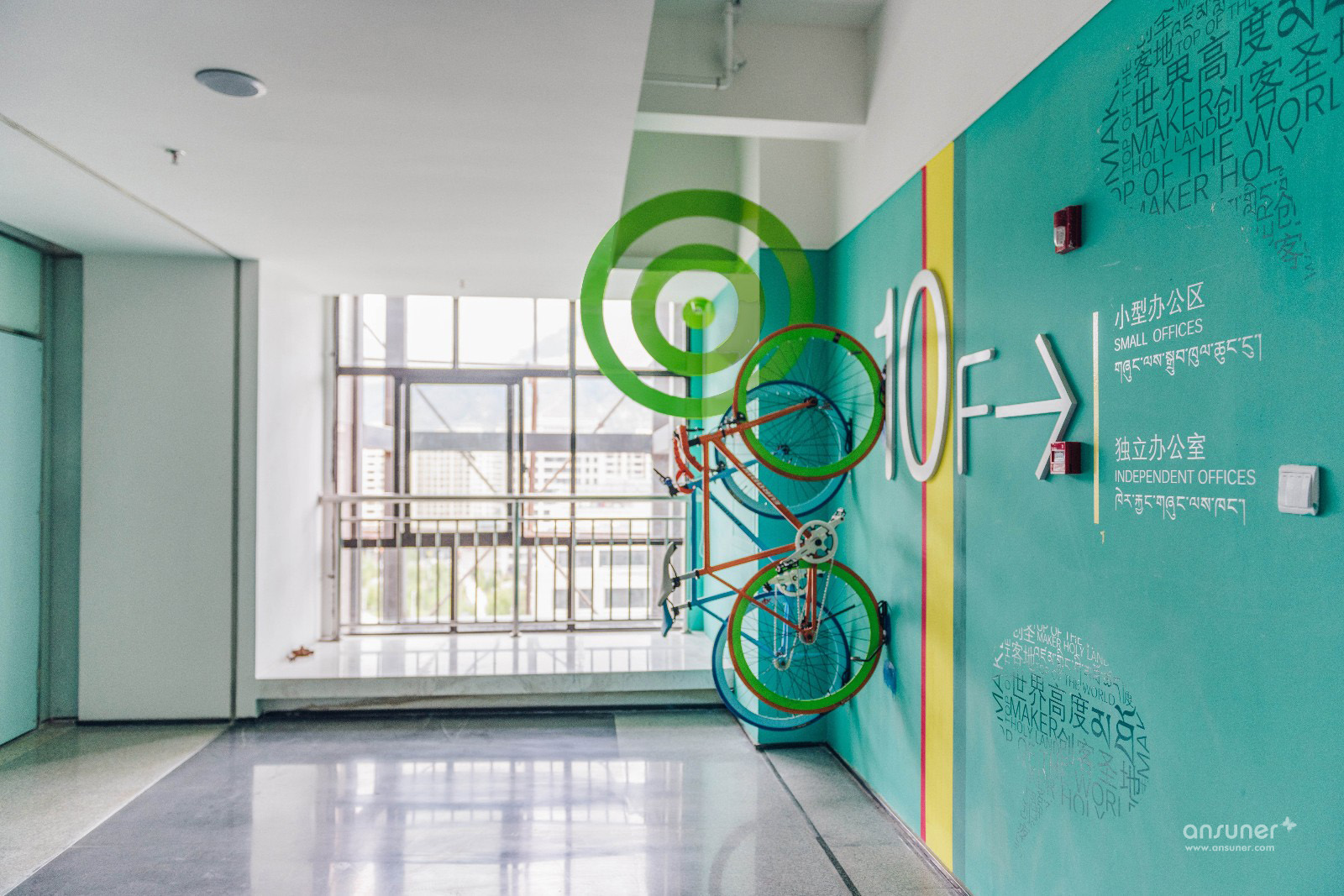 设计灵感来源于西藏山脉、动物、服饰等元素组成地域文化,运用现代设计手法,体现现代藏式风格。通过平面设计与空间的结合丰富硬装设计,与使用群体年龄相匹配,通过原创设计使该项目从单纯的地理高度达到较高的艺术高度,将拉萨众创空间打造成市场化、专业化、集成化、网络化的“众创空间”,为小微创新企业成长和个人创业提供低成本、便利化、全要素、开放式的新型创业服务平台,实现创新与创业相结合、线上与线下相结合、孵化与投资相结合,为创业者提供良好的工作空间、网络空间、社交空间和资源共享空间。