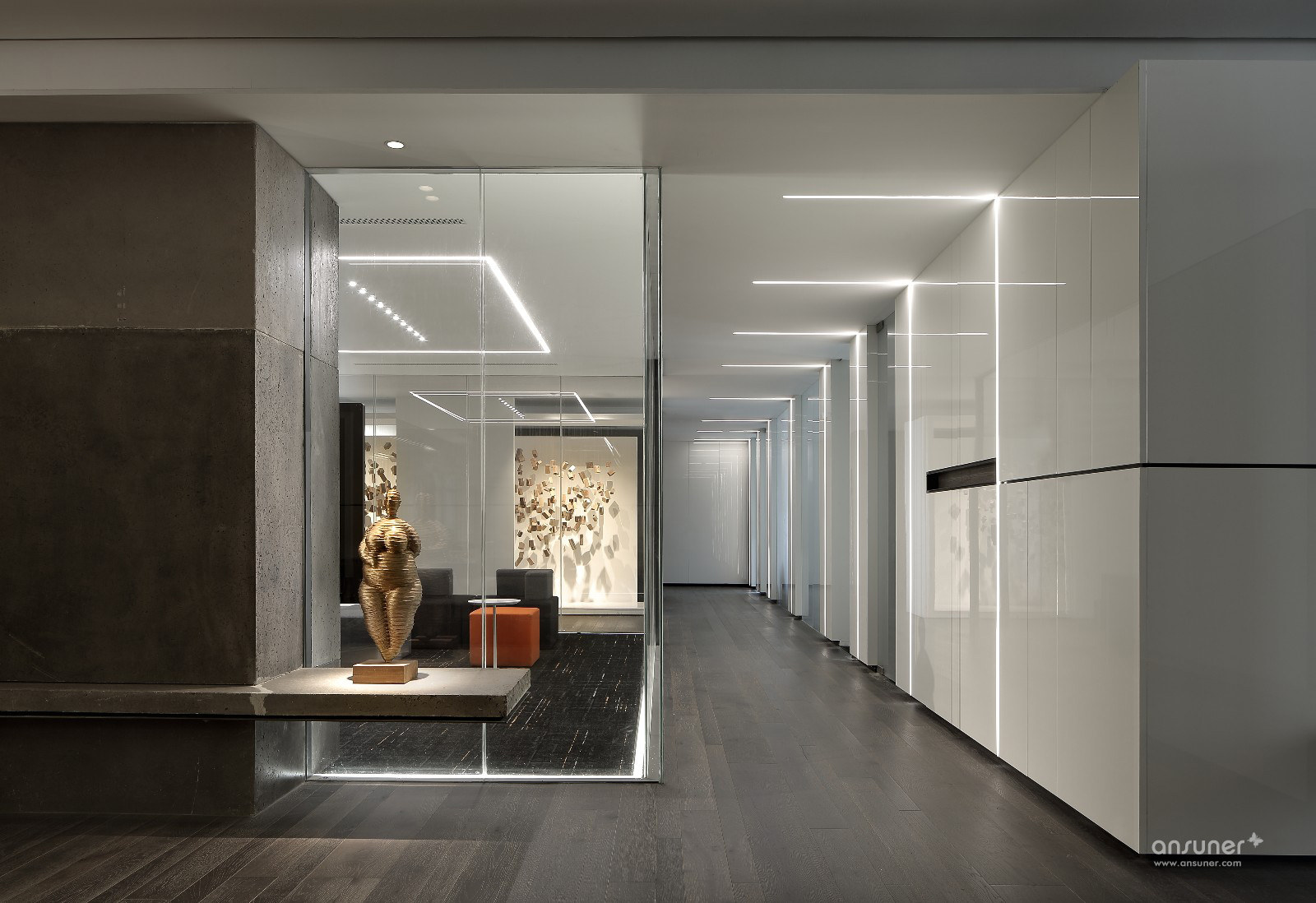 都说光是设计的最高手法,作为以室内设计入手的设计师,很难有很好的机会阐述对自然光的应用。此次,设计利用三道白墙的留缝处理,将自然 光请进室内,从而将原本空间中最暗的区域,锻造成整个空间的亮点